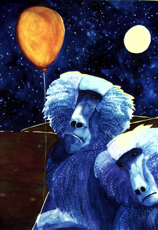 Blue Baboons with a Red Balloon